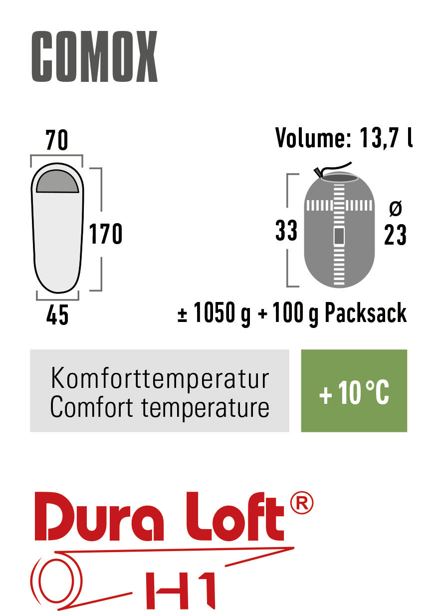 Comox je mumijasta spalna vreča zasnovana posebej za otroke stara približno 8–9 let